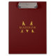 Stay organized in style with this maroon professional clipboard personalized with a custom name and monogram. The rich maroon finish adds a sleek, sophisticated look, while your personalized details make it uniquely yours. Perfect for work, school, or events, this clipboard combines functionality with a professional, polished appearance.