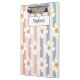 Esta área de transferência floral é decorada com margaridas brancas sobre fundo listrado em cores pastéis. Facilmente personalizável com seu nome. Excelente de volta à escola ou de presente.