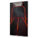 This artwork features a deep black background with glowing orange neon lines, soft cinematic fog, and dramatic lighting that creates a futuristic spooky elegance.