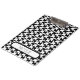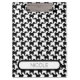 Salónica da forma repetida do cão em 2 cores: fundo preto e personalizável (aqui branco). Design com etiqueta branca e borda preta Faux houndstooth para nome na Área de Transferência.