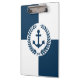 Design com temas náuticos, com decoração da soleira da âncora e da soleira do louro sobre fundo geométrico azul e branco