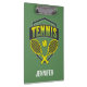 Design de texto "Tênis" verde com bolas amarelas de tênis e decoração em rack para todos os que gostam de jogar ou assistir jogos de tênis. Você pode mudar facilmente a cor de fundo. É fácil personalizá-lo alterando os nomes/data/texto etc.