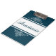 Design floral elegante com decoração de nomes e listras sobre fundo azul e branco