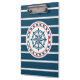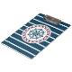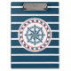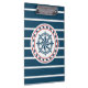 Design náutico com decoração em forma de bússola, em fundo listrado a azul e a branco