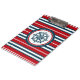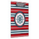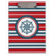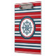 Design náutico com decoração em forma de bússola em fundo listrado vermelho, azul e branco