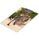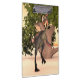Renderização digital 3D de um gigantoraptor de dinossauro num céu vermelho e um fundo verde de árvore