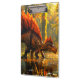 Esta prancheta tem um dinossauro nela.