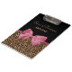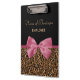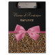 Uma elegante prancheta de impressão de peles de ouro de leopardo, com uma fita cor-de-rosa de sangria chic presa num arco de na moda. Personalize este cúmplice do salão de moda, cor-de-rosa e ouro, para trazer à tona o viciado em qualquer funcionário, adicionando sua empresa e seu nome. Imagem impressa plana, não com pelo ou fita real.