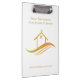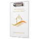 Esta área de transferência de empresas imobiliárias é personalizada com a sua empresa e o nome do agente. Este presente de corretor de ouro moderno apresenta uma bonito casa com um Weathervane no topo e curvas elegantes por baixo. Personalize este item de marketing comercial com suas próprias informações. Mantenha o design ou substitua pelo seu próprio logotipo.