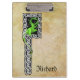 Um dragão verde com um nó celta trabalha na fronteira de um pergaminho antigo. Personalize com seu nome ou dê como presente.