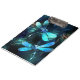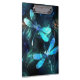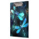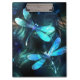 Duas libélulas transparentes, luminosas, turquesas, desenhadas artisticamente sobre fundo noturno, com algas e vagalumes luminescentes do lago. Dragonfly brilhante.