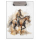 Traga o charme robusto do Ocidente para o seu escritório ou tarefas de fazenda com esta personalizável Dusty Trail Ride em Watercolor Clipboard. Este conselho resistente apresenta a design dinâmica de aquarela de um cowboy e cavalo, fornecendo um na moda e um pano de fundo personalizado para a tomada de notas ou a papelada. Personalize-o com Mestre Ranch, Chefe de Rastreio ou Plano de Galopa Diário.