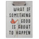 Área de transferência do Office com aspas encorajadoras E se algo bom estiver prestes a acontecer e uma borboleta monarca. Encoraje-se a si mesmo ou a um amigo. Transformem pensamentos negativos em possibilidades positivas.
