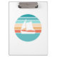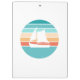 Design do pôr do sol no estilo da década de 1980 em efeito angustiado com o centro de ilustração da embarcação (frente e verso). Linhas transparentes e silhueta de veleiro para se alterar para uma cor de fundo de sua escolha ou manter como branco.