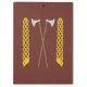 Nesta ilustração original de Richard H. Fay, dois Eixos Dinamarqueses da era Viking (medieval precoce) de longa data são exibidos cruzados entre duas bandas de plástico baseadas em uma design de uma escultura de pedra da Era Viking na Ilha de Man.