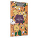 Embrace a retro-inspired aesthetic with this charming clipboard, showcasing a delightful floral pattern that evokes a sense of vintage charm. The design bursts with cheerful yellow and white blossoms nestled amongst vibrant green leaves, all harmoniously arranged on a sunny orange base. A contrasting plum purple name plaque provides a stylish space for your name, making it distinctly yours. This clipboard is a fantastic way to add personality and flair to your workspace, perfect for bringing a smile to your face during study sessions or workdays.