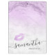 Área de transferência de artista elegante e na moda, com textura de mármore roxa, brilho, lábios roxos bonito e letra elegante de caligrafia.