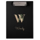 A área preta elegante apresenta um monograma botânico dourado no centro.
