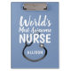 Enfermeira Enfermeira Bonita Stethoscope Blue Personalised Clipboard é um design moderno divertido com cor de fundo azul pastel personalizável. Ambas as partes têm um estetoscópio e "a enfermeira mais incrível do mundo" em letras grandes de guião branco escovado no centro, seguidas do seu nome. Você pode excluir o nome se desejar. Faz uma bela ideia de presente de enfermeira! Clique na opção personalizar modelo e digite o nome