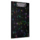 Possui estrelas brilhantemente coloridas brilhando no céu noturno.