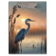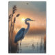 Um herão azul excelente está em um pântano negro no nascer do sol, rodeado por talheres e sementes nesta cena tranquila. Esta prancheta é perfeita para qualquer um que ama pássaros, a natureza e o exterior.