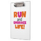 Se você gosta de correr, correr 5Ks, 10Ks, meia maratona, ou maratonas, você vai adorar este design de texto colorido em laranja e rosa quente que lê Run and Embrace Life! Corra e Abraça Camisas de Vida, capuzes, ímãs, botões, cartões, adesivos, correntes-chave e muitos outros itens para corredores que adoram um design brilhante e colorido!