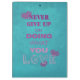Esta design de tipografia da área de transferência apresenta texto motivacional em cores roxas dizendo "Nunca desista de fazer o que você ama", e três corações bonitinhos rabiscados sobre o fundo azul teal texturizado. Legal e adorável presente para quem precisa de um pouco de encorajamento e motivação para continuar a seguir o seu próprio caminho. ・ Você pode personalizá-la - redimensionar/mover a imagem, adicionar texto e muito mais ou transferi-la para outro produto. ・ ・ Gostaria de ver uma foto da sua compra - envie uma mensagem para mim ou apenas compartilhe-a e marque-me @edrawings38art (no FB/IG/Twitter)! Obrigado! 💜