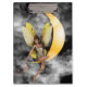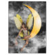 Uma fada bonita que senta-se na lua alaranjada entre as nuvens que dispersam a poeira feericamente. Disponível em cores múltiplas do fundo para a maioria de produtos.