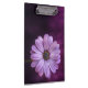 Esta design apresenta uma bela imagem de um conjunto de flores roxas contra um fundo mais escuro.