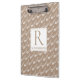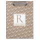 Flores brancas pequenas na prancheta floral rústica do papel kraft. Mostra um padrão de pequenas flores e folhas e seu monograma em fundo kraft.