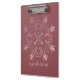 Prancheta Personalizada: Padrão Floral com Florescimento e Espirais Bonitos/Fundo Rosa Cor-de-Rosa Coordenado/Personalização de Nome com Letra Moderna