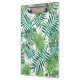 O design apresenta ilustrações atraentes de frondas palmeiras e folhas. Eles são pintados em aquarela por um artista qualificado. As folhas verdes parecem absolutamente lindas!
