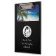 Silhueta de golfinho preto saltando sobre um monograma com uma selfie, foto ou imagem personalizada. Uma ideia para uma festa de praia, para todos os eventos. Preferencialmente é aniversário, despedida de solteiro ou simplesmente um dia relaxante na praia ou no mar.
