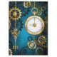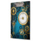Turquesa, texturizada, fundo steampunk com latão e engrenagens douradas, chave prateada e relógio. Estilo Steampunk.