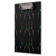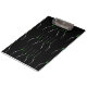 Uma silhueta de três garrafas de vinho preto com rótulos verdes que brilham no escuro.