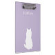 Projetado na parte dianteira mais baixa com uma silhueta branca de um gato longo do cabelo visto da parte dianteira com suas orelhas acima e cauda que olha para fora à esquerda. Sua nome ou escolha de exposições do texto na parte superior em um roteiro branco bonito. A parte traseira tem as patas brancas do gatinho viajar do direito mais baixo ao superior esquerdo. Mostrado em uma luz - a opção roxa mas você da cor do fundo pode escolher sua própria cor. Trabalhos de arte e design por Karlajkitty
