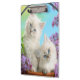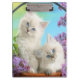 Gatinhos brancos/Área de Transferência com Olhos Azuis e Lilases Mantenham-se organizados, e incrivelmente na moda, com pranchetas personalizadas do Zazzle! Use seu design, imagens ou texto favorito para transformar esse suprimento básico de escola em um cúmplice espantoso, que o manterá no controle, sempre!