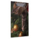 A design apresenta uma fotografia de um gato que procura uma decoração numa árvore de Natal.