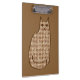 Clipboard em um moderno século Médio, design de gato retrô, em um padrão espiral geométrico - bege, bronzeado e castanho claro, esboçado em castanho de chocolate escuro, sobre fundo castanho médio de cacau