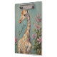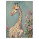 Uma girafa majestosa se posiciona entre as flores lavandas colocadas contra um céu azul pastel calmante. O seu longo pescoço e corpo, enfeitados com padrões únicos, atinge graciosamente o céu acima. Você sabia que cada girafa tem um padrão único de manchas, muito parecido com digitais humanas? Essa design capta a beleza serena desse gentil gigante, misturando sua impressionante estatura com os delicados detalhes de seu entorno.