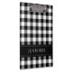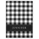 Área de transferência de padrão de gingham verificada em preto e branco clássico com um impressão de nome personalizado nos lados frontal e traseiro. Material de papelaria correspondente disponível.