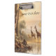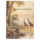 Pintura botânica vinda de três girafas por um rio na selva durante o pôr do sol