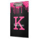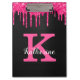 Pranchetas Girly Black Hot Pink Glitter Drives Nome do Monogr