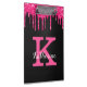 Esta moda e uma única design de cintura vírgula apresenta uma flecha quente, cor-de-rosa, flecha magenta, gotejando no topo, e um grande monograma personalizável em rosa brilhante no centro, na popular serifpografia, juntamente com um nome personalizável em branco, em uma escrita popular, com um olhar manuscrito. O fundo inclui cinzas de carvão com escova, preto-onyx-metal, para adição de brilho. Você pode personalizar este item alterando o monograma e o nome no modelo do produto.