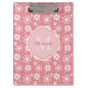 Adicione uma vibração cômica e feminina ao seu estilo de escritório com esta prancheta de padrão de flores rosa e margarida branca, com um monograma com na moda. Personalize esta design floral feminina adicionando seu nome e monograma inicial.