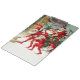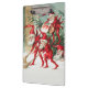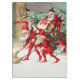 Funny vintage illustration of little white bearded gnomes dressed like Santa, sweeping snow with brooms. Published by L. Prang & Co.