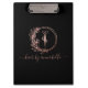 Área de transferência moderna e chic hairstylist. Design apresenta o logotipo redondo com elementos florais e dentro de tesoura de cabeleireiro. Personalize com um nome na frente. Perfeito para cabeleireiros, cabeleireiros, cabeleireiros, etc.