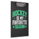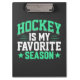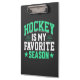 A prancheta de hóquei com texto verde e branco sobre fundo preto diz: Hockey é a minha estação favorita!