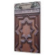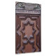 Terminada a porta escura de carvalho polida para a igreja medieval espanhola com areias e latina acima.
