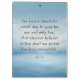 Este design apresenta um fundo de aquarela azul suave que evoca um senso de calma e paz. Gradientes suaves misturam tons de azul, lembrando um céu tranquilo ou ondas suaves. No centro, o texto de John 3:16 é lindamente escrito em uma escrita elegante, transmitindo a profundidade da mensagem: "Por Deus tanto amou o mundo que Ele deu a Seu filho e único." A textura aquosa que flui melhora a ressonância emocional do verso, convidando reflexão e meditação. Esta peça serve como um sereno lembrete do amor e da esperança, perfeito para qualquer espaço que procure inspirar e elevar.